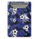 This mini clipboard is shown in a sports soccer ball art print.