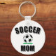 Hand-drawn soccer ball and text. Custom keychains with unique design.