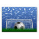 Soccer ball in net on a summer day greeting card. VIRGINIA5050, custom-designed products and gifts at www.zazzle.com/virginia5050*, PaulKleeGiftShop, InternationalGifts, RetirementGiftStore, BirthdayGiftStore, ILoveGiftStore, and FloridaGiftStore.zazzle.com/FloridaGiftStore.