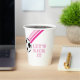 Let's Kick It! Soccer Birthday paper cups with pink stripes and soccer ball.
