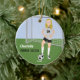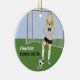 Celebrate the latest and best soccer player with this keepsake ornament. Customise to fit your athlete's information. The name, team and player details are included as a template or delete the text if not needed. This design does not look good on the smaller, one sided ornaments; the details will not show up and the font will look too small. If help is needed with personalising please contact the designer. Background and text colours can be changed if desired. Requests for specific colours, uniform styles, skin tones or hair colour are welcome if you contact the designer - Night Owl's Menagerie, original: 2019.