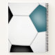 This cool soccer themed spiral notebook features the image of a simple, abstractly oversized soccer ball with teal, black and white panels on the front and back cover - athlete's name and varsity letter, monogram or jersey number are customisable - by katz_d_zynes