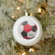 Soccer Red White and Black Ceramic Ball Christmas Ornament