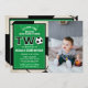 Soccer Second Birthday Photo Invitations! Celebrate your little soccer player with this cute soccer birthday design, created with a soccer field background with "TWO" that has a soccer in place of the "O". Customise the text and exchange the photo with your ballplayer's photo for a special touch to your child's special day with these art birthday party invitations!