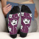 Personalised Soccer themed socks with soccer ball graphic, plus text. Background is shown with a plum purple background and grey text, however socks can be any colour. Select colour at the edit / personalise prompt. Designed by HAMbyWhiteGlove aka HAMbWG. Shown with white text.