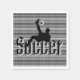 Pictured on top of the word Soccer a soccer player kicks the soccer ball