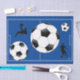 Gift Tissue Shown in Blue - just choose the personalise option to add text or change the background colour. Matches our soccer themed gift bags, paper and tableware collection, sold separately. 203-306-0337.