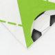 This sporty soccer themed fleece blanket features a lime green, black and white argyle plaid pattern with lime "stitching" extending diagonally across the diamond shapes and black and white soccer balls overlying the lime diamond shapes - customise with athlete's monogram - by katz_d_zynes