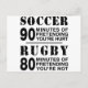 Soccer, 90 Minutes of pretending you're hurt. Rugby, 80 minutes of pretending you're not.