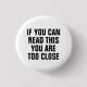 "If you can read this, you are too close" social distancing themed design.