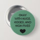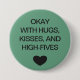 Social distancing colour-coded green button to help you feel safe and comfortable with your social interactions and let others know what level of social distancing you are comfortable with. The text reads "OKAY WITH HUGS, KISSES, AND HIGH-FIVES".