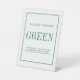 Social distance wedding guest colour code green pin or band to wear information instruction sign. Reads Please choose green. If you want to talk to others and you are happy to have a hug or share an elbow bump. Place green pin button badges or wristbands on the table by this sign. Badges and other colour-coded posters available in store. Designed by www.mylittleedenweddings.com