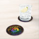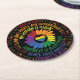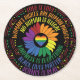 Paper coaster features colourful word art design that covers all the bases with its shoutout to human rights. Quotes include: Black Lives Matter, Science is Real, Love is Love, Women's Rights are Human Rights, No Human is Illegal, and Kindness is Everything. Black background with centre rainbow heart and sunflower