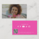Modern elegant overlay handwritten calligraphy signature script name simple hot pink and white business card template with scanning QR code to website, catalogue, or portfolio and custom photo. Suitable for social media influencers or beauty professionals: makeup artists, hairstylists, nail technicians, lashes and brows specialists, personal stylists, or lifestyle bloggers.