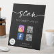 Modern calligraphy “connect with us” sign. Customise this sign with your QR code, business logo and social media info. Click “customise further” to change the background colour to match your business’ colour scheme.