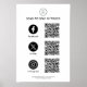 Social media business poster featuring your company logo, QR codes for customers to follow you on social media platforms, and contact details.