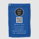 Elegant, minimal, blue and black, qr code, your logo, social media business golf towel. Personalise with your details.