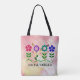 Social Worker, graphic flowers design, pastel pink background, custom-designed all-over-print tote bag.