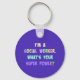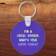 Social worker humour, pastel lettering on blue indigo background, keychain.
