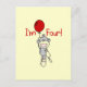 Cute sock monkey girl 4th birthday t-shirts, mugs, cards, tote bags, 4th birthday buttons, and more featuring a monkey, red balloon, and text that reads "I'm Four!".
