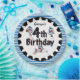Sock Monkey Baseball 4th Birthday paper plates, a cute design that's great for kids who love sports, especially baseball, and cute monkeys! Features three sock monkey baseball players in baseball caps, one sliding into home plate, one up at bat, one getting ready to pitch the ball! Black polka dotted text reads 4th Birthday and there's a border of blue and white stripes and a black decorative ring. You can easily customise these sock monkey baseball 4th birthday paper plates with a name!