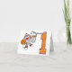 Cute sports theme first birthday invitation with a sock monkey, basketball and hoop design and a large orange number 1.