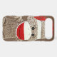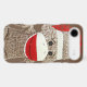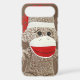 a classic sock monkey in white, brown and red is featured on this iphone case