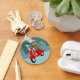 Check out sock monkey is riding his red vintage Vespa scooter while giving you a wave hello! This sock monkey illustration would be great for Vespa and monkey fans alike.