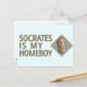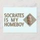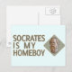 The text says "Socrates is my Homeboy" in greens and browns. This is, of course, adorned by the image of a statue of Socrates' head.