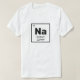 Science-themed t-shirt features the periodic table, with colourful, neatly arranged elements, showcasing atomic numbers, symbols, and names. The design highlights key elements in bold, making it both visually engaging and educational for chemistry enthusiasts.