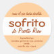 Sofrito (a condiment made in Puerto Rico used for everything from soups to rice) sticker in light peach and orange with a template that can be customised to include your name, brand, slogan, ingredients, etc. It can also be used in english as a baked by or made by sticker for all your needs.