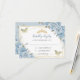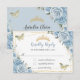 Soft Baby Blue Floral Gold Quinceañera Butterflies RSVP Card