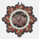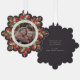 An elegant soft black snowflake-shaped Christmas/Holiday paper ornament card with a ribbon to hang it up. Hand painted watercolor red berries and winter greenery form a border around your photo. All text is fully editable so you can easily change the message/style/color/size. The back has template text for a longer printed message - delete before ordering if not wanted. The backer can also be swapped out for a photo if you prefer. Other colors and coordinating items available.