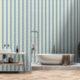 Soft blue and ivory ticking wallpaper