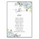 Soft Blue Botanical Table Number Seating Chart