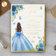 Soft Blue Floral Dress Butterfly Quinceanera Gold