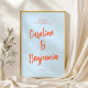 This wedding welcome sign features the couple's names in a big, warm orange script on a soft blue background, with "Welcome to the Wedding of" in small clean letters at the top and the wedding date below. It's simple and bold — the names are the whole design, which makes it feel personal and intentional. Prop it on an easel at the venue entrance to greet your guests. It coordinates with the matching save the dates, invitations, and stationery in the same soft blue and orange style.