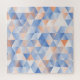 Triangles intertwine in soft blues and oranges. An artful masterpiece of geometric harmony.