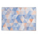 Triangles intertwine in soft blues and oranges. An artful masterpiece of geometric harmony.