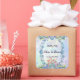 The size is perfect and the design has a softness with the beautiful flowers around the edges. The black lettering on the white background is sharp. It stands out beautifully. I love the Mixture of font styles as it catches the eye.