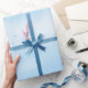 Its clean, modern aesthetic pairs beautifully with neutral ribbons, kraft accessories, and coordinated blue tones.