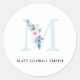 SOFT BLUSH BLUE FLORAL ALPHABETS NAME LETTER M CLASSIC ROUND STICKER