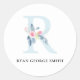 SOFT BLUSH BLUE FLORAL ALPHABETS NAME LETTER R CLASSIC ROUND STICKER