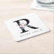 SOFT BLUSH BLUE FLORAL ALPHABETS NAME LETTER R SQUARE PAPER COASTER