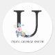 SOFT BLUSH BLUE FLORAL ALPHABETS NAME LETTER U CLASSIC ROUND STICKER