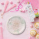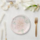 A soft floral of roses in blush pink and sage green is the focal point for many of the pieces of this wedding suite that also features elegant script text and modern design layouts. The paper plates shown here have a centred arrangement of roses on a muted, watercolor background with your names and wedding date in gold. Easily enter your details using the provided template. View the collection link on this page to see all of the matching items in this beautiful design or search ID828 to see additional colour choices for this design.