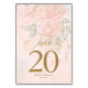A soft floral of roses in blush pink and sage green is the focal point for many of the pieces of this wedding suite that also features elegant script text and modern design layouts. The table number card shown here has a muted border of roses with 'Table' calligraphy and your names and wedding date centred in gold. Easily enter your details using the provided template. View the collection link on this page to see all of the matching items in this beautiful design or search ID828 to see additional colour choices for this design.