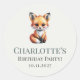 Soft Boho Green Woodland Fox Birthday with Name Classic Round Sticker