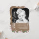 This Baptism Invitation photo card features an elegant layout of soft pink peonies, a lace cross, burlap background, and your child's name in a pretty script font.