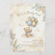 Soft Brown and Sage Balloon Teddy Bear Baby Shower Invitation